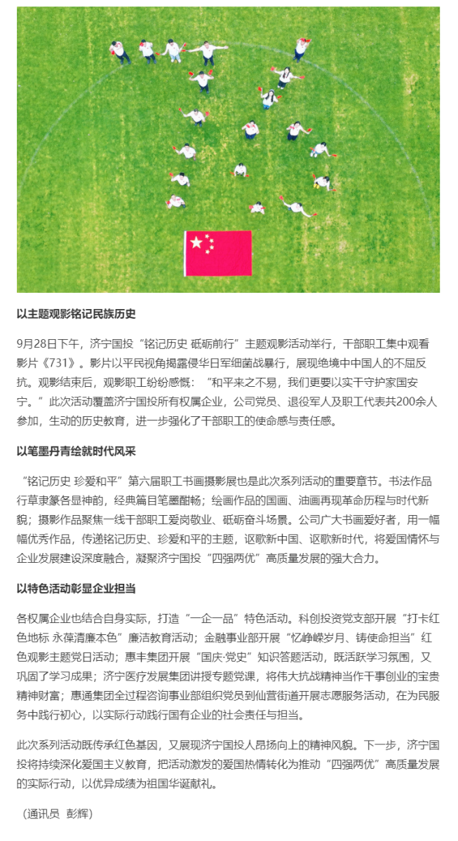 厚植爱国情怀,济宁国投开展喜迎国庆摄影、微视频等系列活动